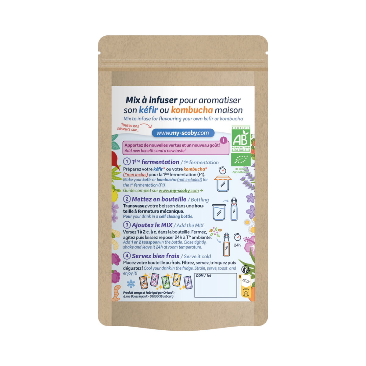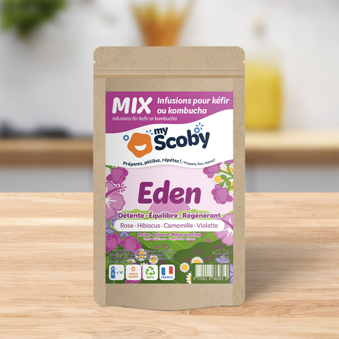 Aromatisez votre boisson de kéfir ou de kombucha avec nos délicieux MIX à infuser 100% naturels : une façon originale d’apporter de nouvelles saveurs et de nouveaux bienfaits à vos propres boissons. Il s'agit d'un assemblage d'ingrédients issus de l'herboristerie, sélectionnés par nos soins pour un résultat fabuleux avec le kéfir de fruit comme le kombucha.