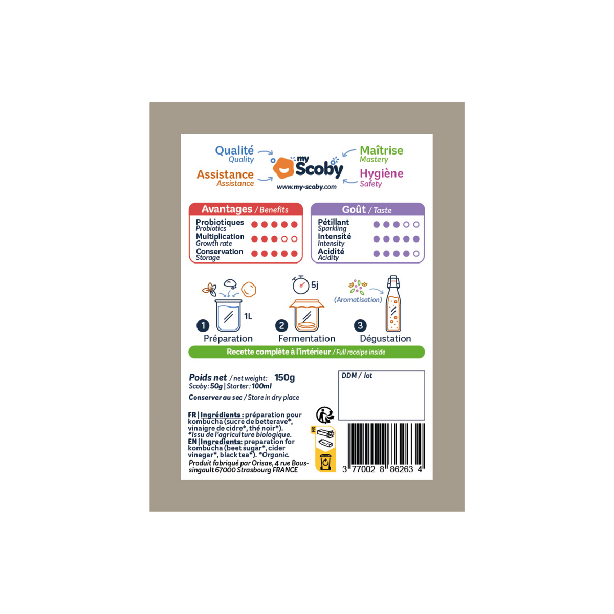 Kombucha scoby is essential for making kombucha drink. It contains bacteria and yeasts in symbiosis that work to ferment sweet tea. The drink obtained is quite similar in flavor as cider or beer. It is very popular as an alcohol-free alternative. It is easy to make yourself, very economical and very ecological!