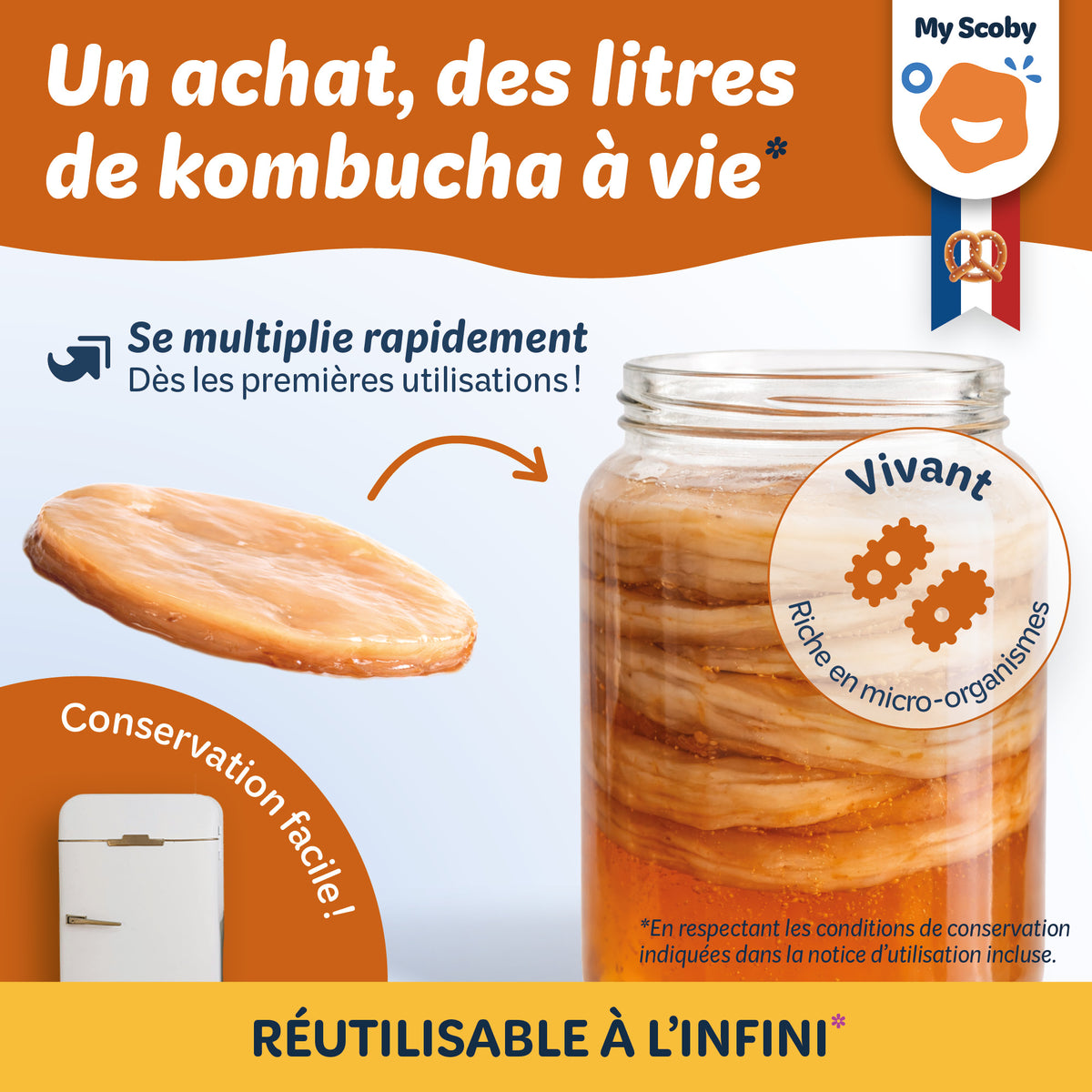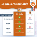 Chez My Scoby, nous sommes convaincus que l’on peut être gourmand tout en préservant sa santé, la planète et son porte monnaie. C’est pourquoi nous nous sommes spécialisés dans la fermentation maison, pour vous permettre d’améliorer votre microbiote à partir d’ingrédients simples et savoureux.